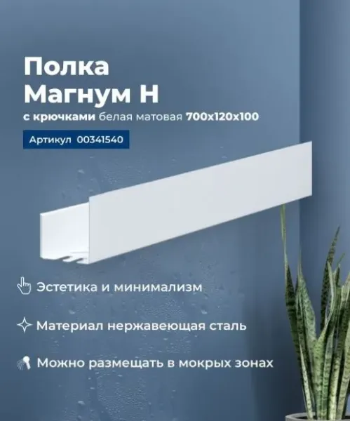 Полка Aquanet Магнум Н 70x12 белая матовая, с крючками — это компактное и стильное решение для организации пространства, которое сочетает в себе функциональность и современный дизайн. Вот ее основные характеристики и преимущества: