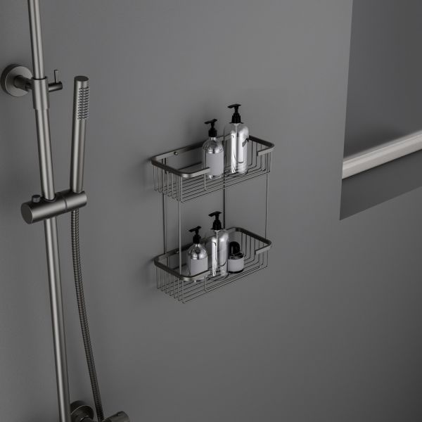 "Черное золото" - неизменно эффектный и привлекающий внимание цвет. Приглушенный мягкий оттенок черного, подчеркнет форму раковины или цвет мебели.Полка двойная Timo Saona 13083 - практичный аксессуар, который дополнит интерьер в ванной комнате. Полка является удобным решением для расстановки предметов первой необходимости, поможет сохранить в помещении уют и порядок. Аксессуары для ванной комнаты и туалета - важные составляющие комфортной и продуманной обстановки. Цвет "черное золото" не капризен в уходе, на нем менее заметны загрязнения и мелкие царапины.