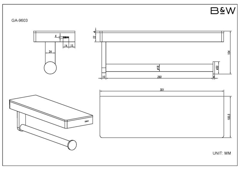 Полка и держатель для полотенца Black and White Gravity 9603C хромКоллекция выполнена в двух цветовых решениях CHROME и GUN Metal. Благодаря использованию закаленного стекла, каждая деталь аксессуара приобретает свое уникальное отражение. В цветовом решении CHROME используется белое стекло. Для удобства пользования, на концах держателя для туалетной бумаги использованы стопоры, которые не позволяют рулоны слетать при использовании. Коллекция выполнена из надежных материалов: латунь и закаленное стекло, именно это позволяет не беспокоиться о надежности и увеличенном сроке службы каждого изделия.