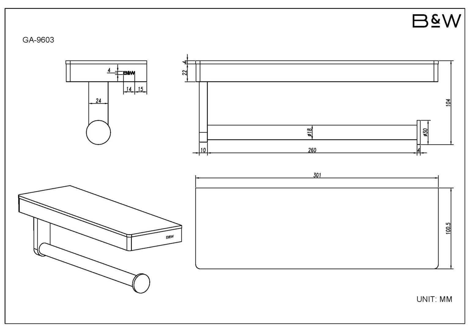 Полка и держатель для полотенца Black and White Gravity 9603GM Темно-серыйКоллекция выполнена в двух цветовых решениях CHROME и GUN METAL. Благодаря использованию закаленного стекла, каждая деталь аксессуара приобретает свое уникальное отражение. В цветовом решении GUN METAL используется черное стекло. Для удобства пользования, на концах держателя для туалетной бумаги использованы стопоры, которые не позволяют рулоны слетать при использовании. Коллекция выполнена из надежных материалов: латунь и закаленное стекло, именно это позволяет не беспокоиться о надежности и увеличенном сроке службы каждого изделия.