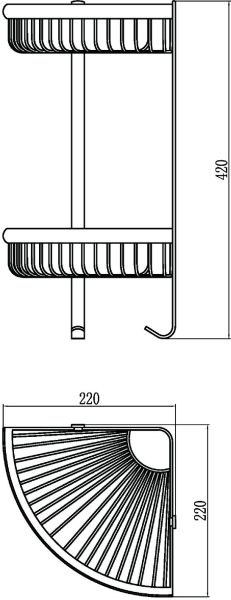 Полка решетка угловая двойная Savol (S-B5854-2) золото