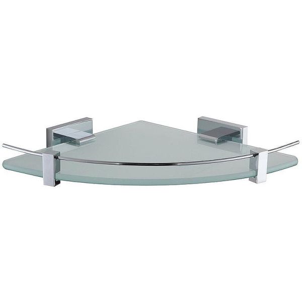 Полка стеклянная угловая с ограничителем Gappo G0721-1, цвет хром, держатели из латуни. Размер 25 * 25 см.