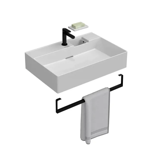 Полотенцедержатель LOGICA 70 подходит для подвесных раковин LOGICA шириной 70 см. Выполнен в черном матовом цвете, конструкция сварная. Крепится винтом снизу раковины в отверстия. В комплектацию входят крепления, гарантийный талон, инструкция по установке держателя.