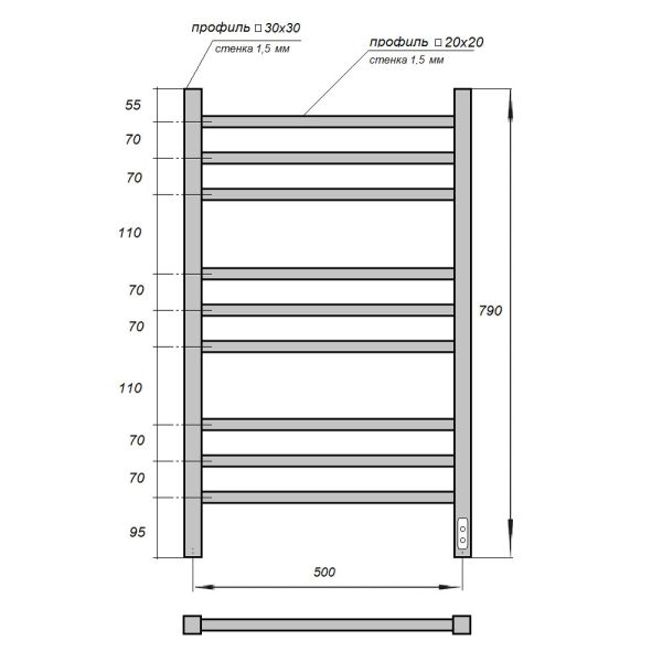 Полотенцесушитель электрический APEXTERMO Atlas AT00185BM 800x500 черный матовый Подробнее