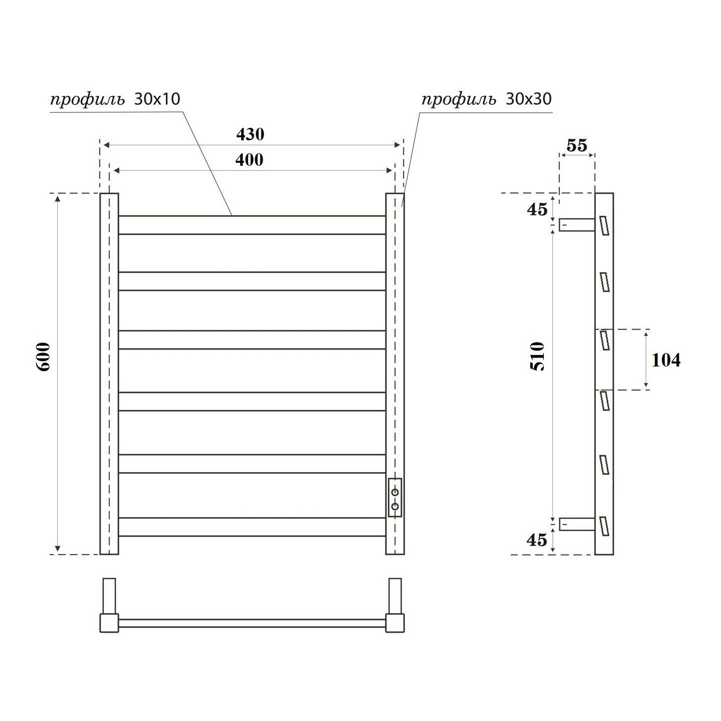 Полотенцесушитель электрический APEXTERMO Galaxy GL00164WM 600x400 белый матовый