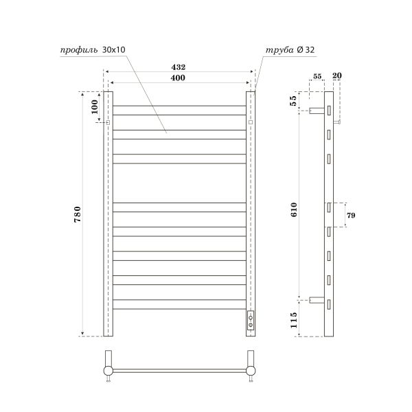 Полотенцесушитель электрический APEXTERMO Sfera SF10184BM 800x400 с крючками черный матовый Подробнее