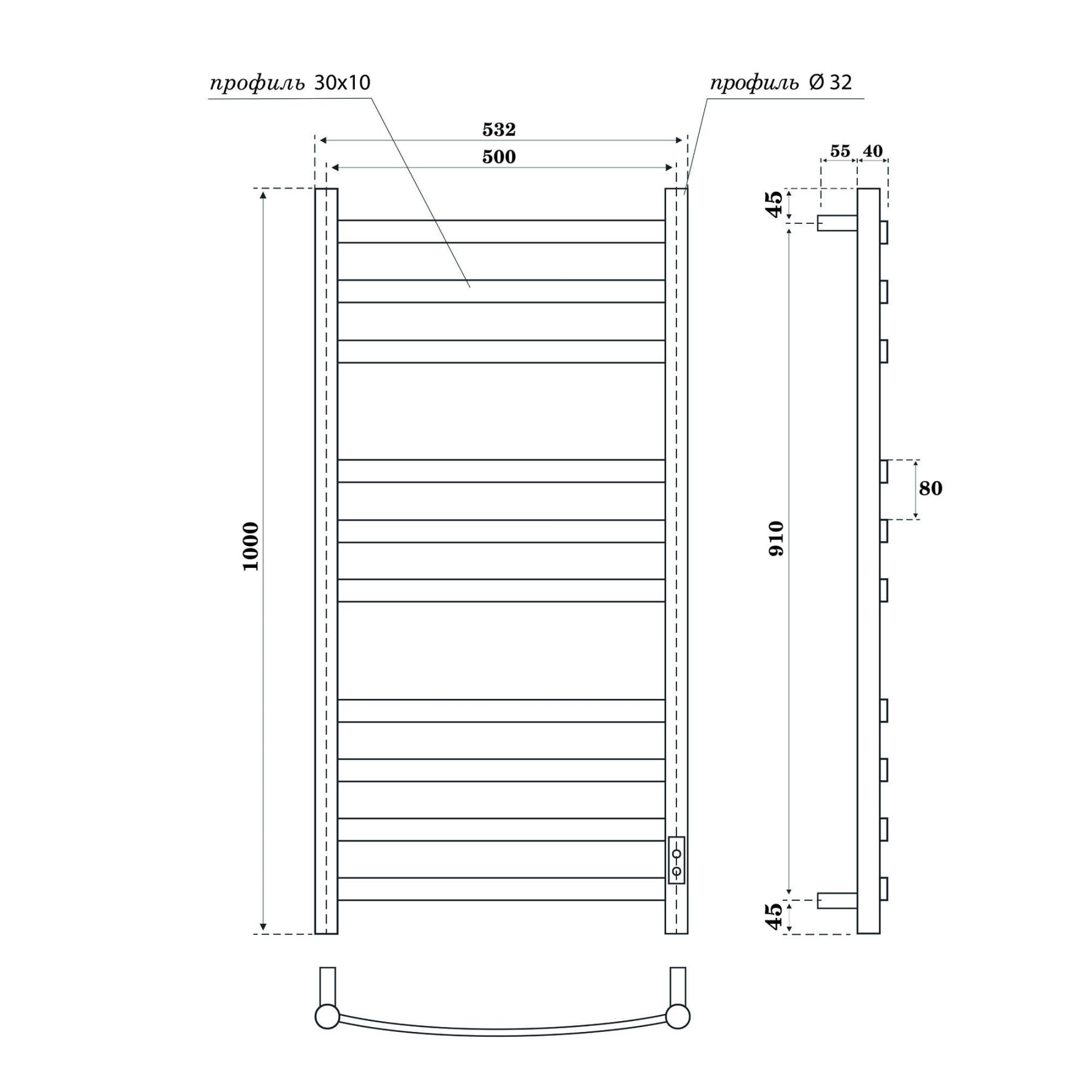 Полотенцесушитель электрический APEXTERMO Umbra UM00105WM 1000x500 белый матовый Подробнее