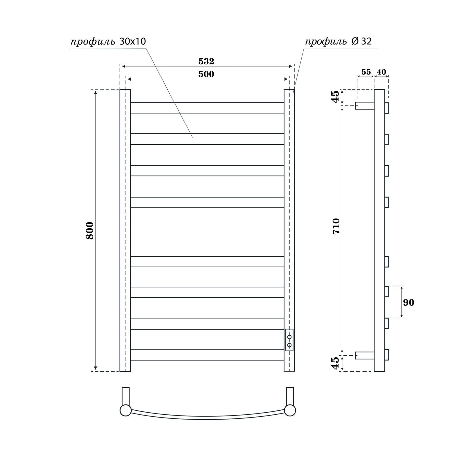 Полотенцесушитель электрический APEXTERMO Umbra UM00185BM 800x500 черный матовый Подробнее