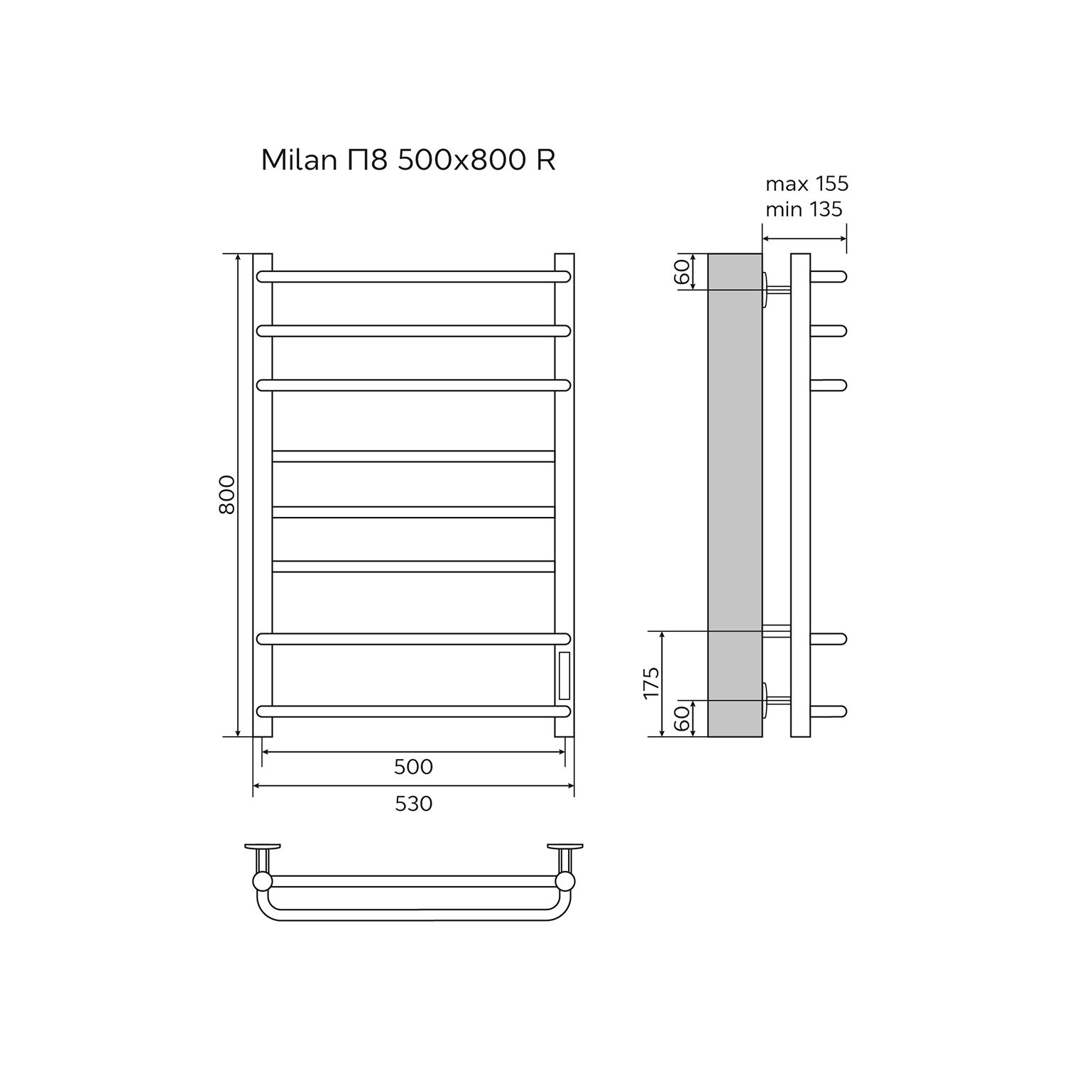 Полотенцесушитель электрический AZARIO MILAN AZ90858B 500/800 8 секций, диммер справа, черный