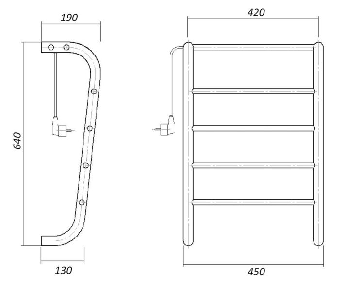 Количество перекладин: 6Коллекция: БолероТип: электрическиеЦвет: хромМощность, Вт: 50Ширина (мм): 450Высота (мм): 660Глубина (мм): 190-130Вес: 2.1Объем: 0.066Тэн/подключение: справаСтрана: РоссияГарантия: 2 года