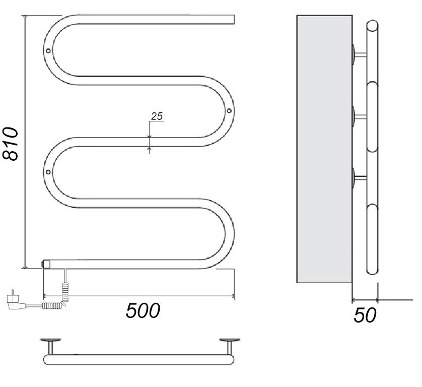 Электрический полотенцесушитель E-образный из нержавеющей стали.