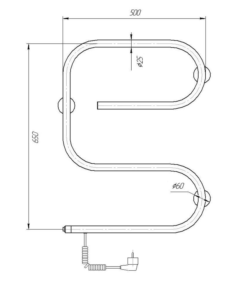 Электрический полотенцесушитель E-образный из нержавеющей стали.