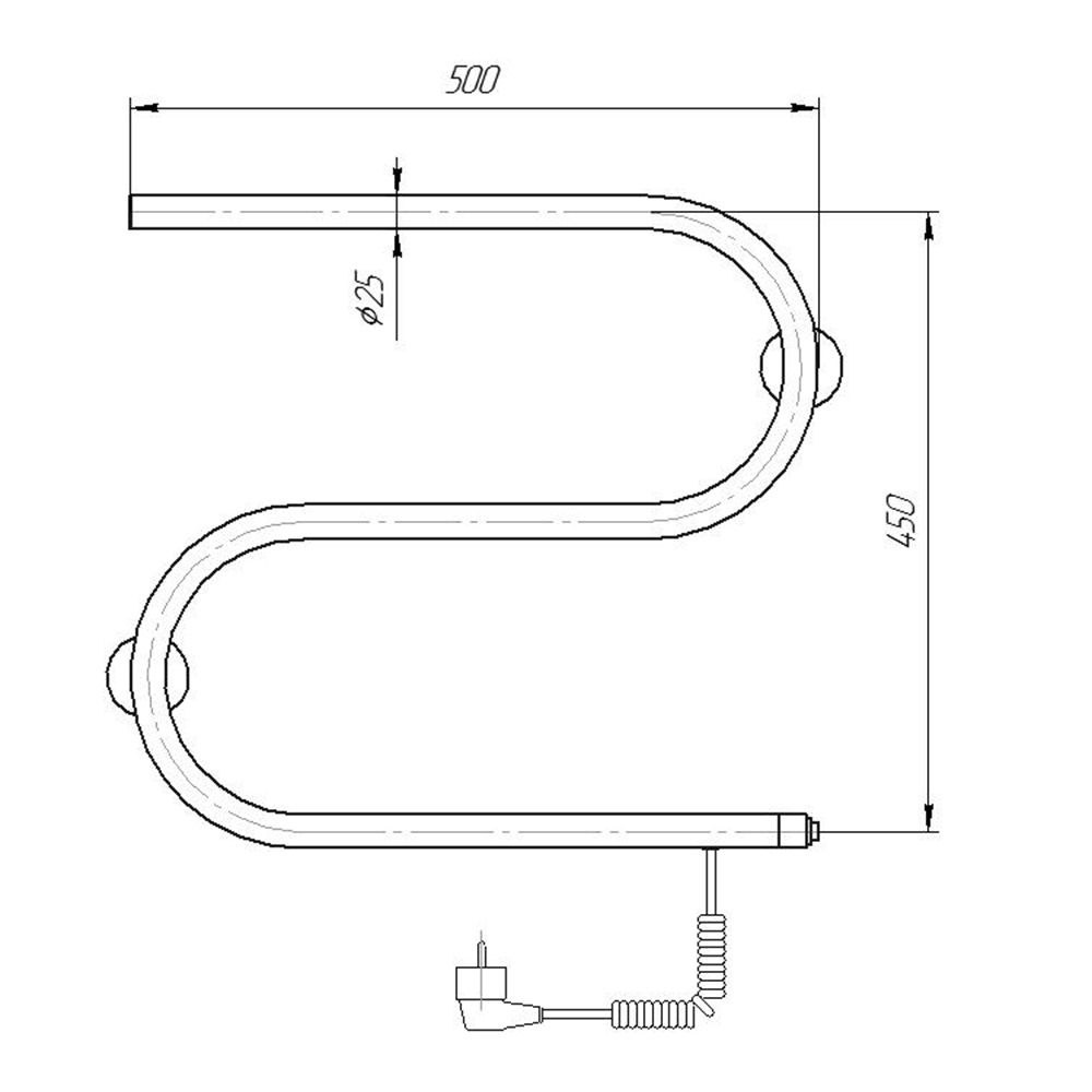 Электрический полотенцесушитель S-образный из нержавеющей стали.