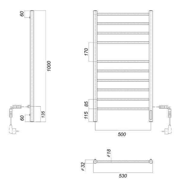 М/о расстояние (межосевое расстояние): 500Количество перекладин: 10Коллекция: МедеяТип: электрическиеЦвет: черныйМощность, Вт: 113Ширина (мм): 532Высота (мм): 1000Глубина (мм): 83-93Вес: 6,7Объем: 0,0753Тэн/подключение: справаСтрана: РоссияГарантия: 2 года