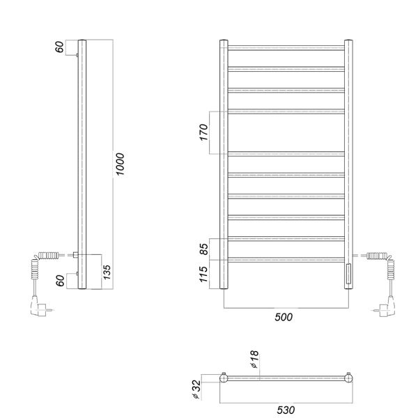 М/о расстояние (межосевое расстояние): 500Количество перекладин: 10Коллекция: МедеяТип: электрическиеЦвет: хромМощность, Вт: 113Ширина (мм): 532Высота (мм): 1000Глубина (мм): 83-93Вес: 6,7Объем: 0,075Тэн/подключение: справаСтрана: РоссияГарантия: 2 года