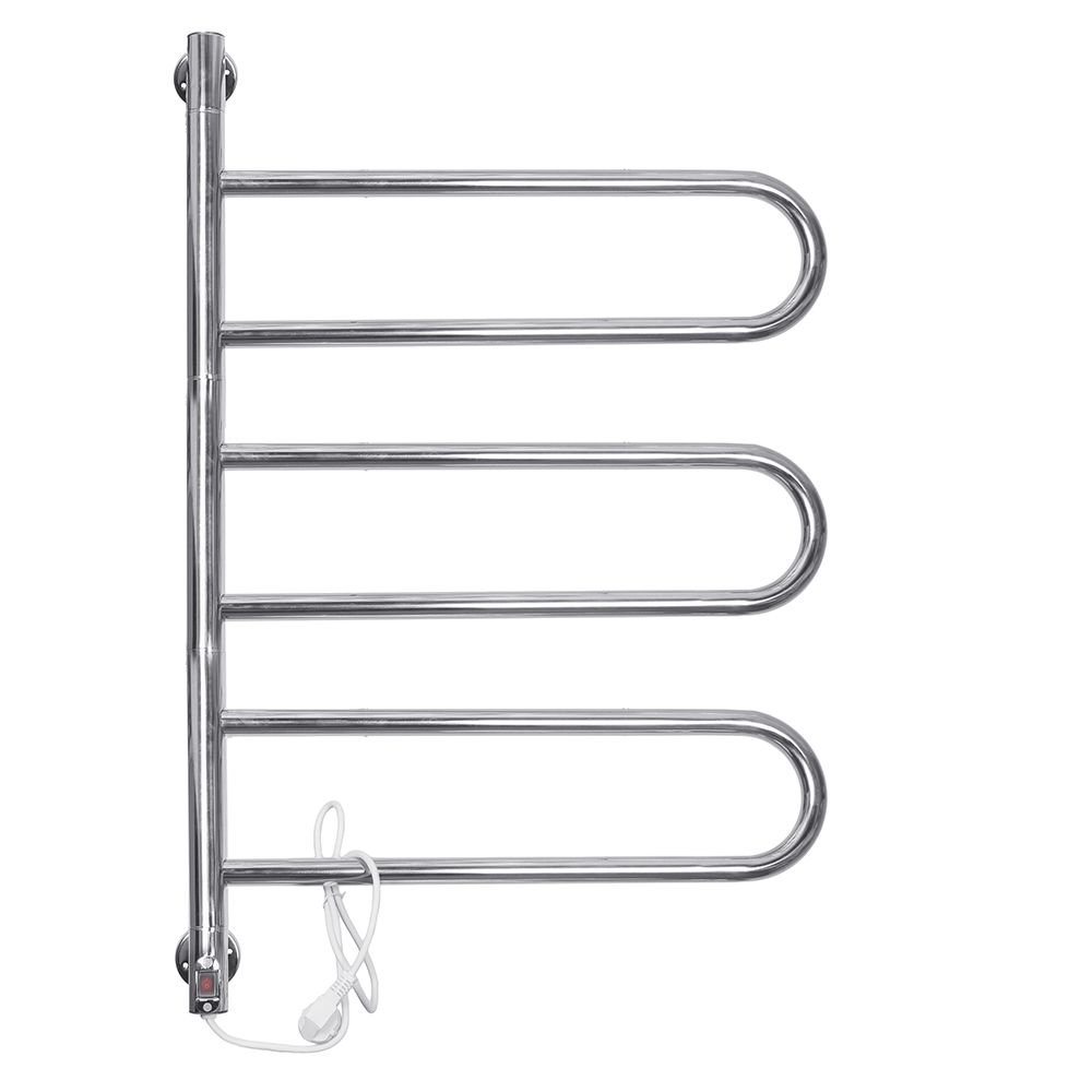 Электрический полотенцесушитель из нержавеющей стали с поворотным механизмом перекладин. Разворачивается на 180 градусов.