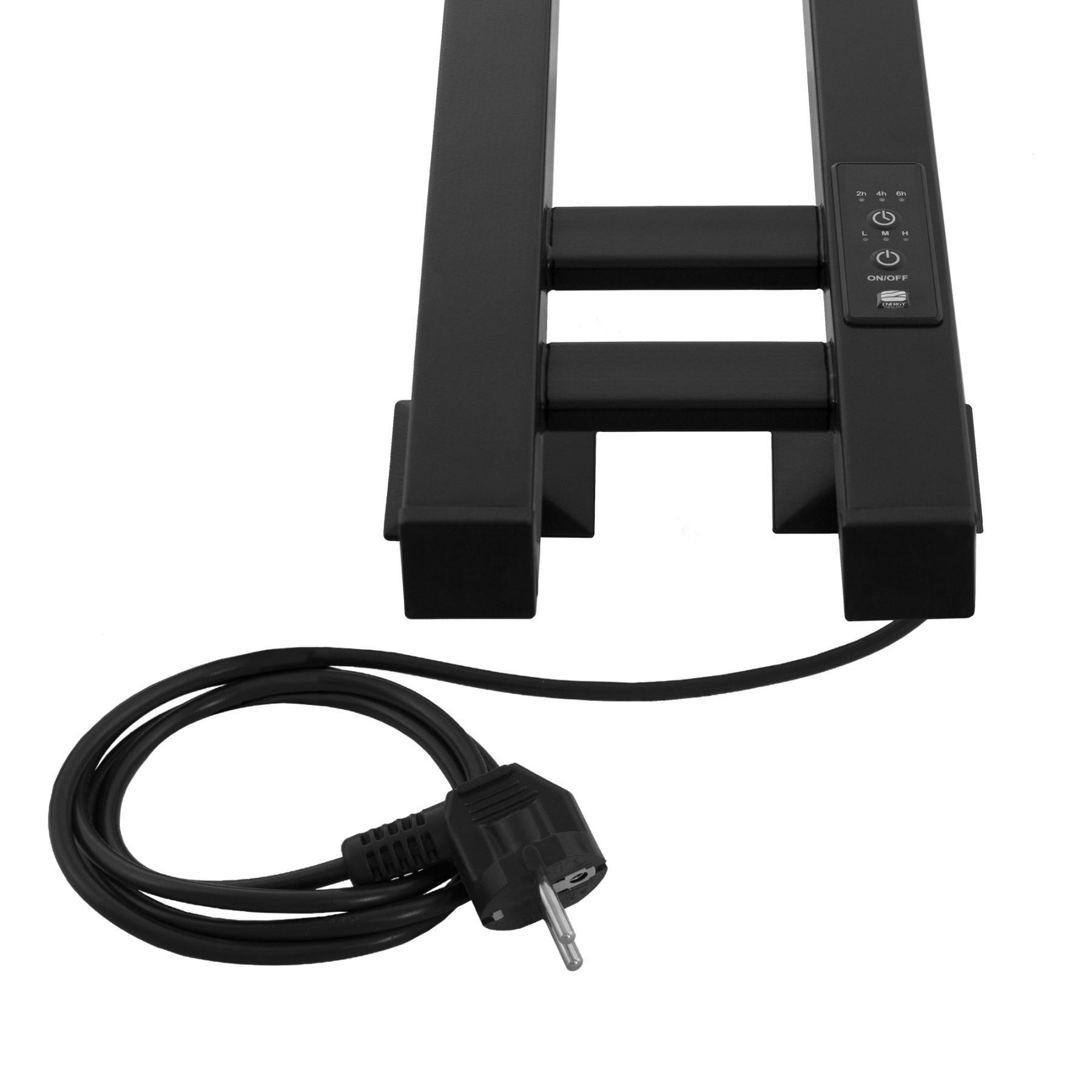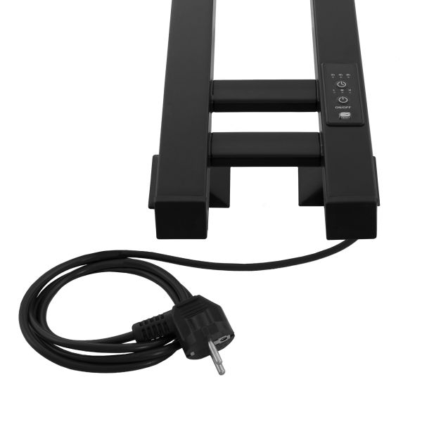 Energy Dart – узкий электрический полотенцесушитель-лесенка с терморегулятором и таймером. Нагревается за счет безопасного греющего кабеля в изоляции. Отличительная особенность модели – форма труб: вертикальные трубы имеют квадратное сечение, горизонтальные - прямоугольное сечение. В верхней и средней частях полотенцесушителя расположены крючки, на которых удобно вешать полотенца или одежду. Небольшая ширина полотенцесушителя позволяет размещать его на ограниченной площади, например, в узких нишах и простенках.Полотенцесушитель оснащен блоком управления с удобной регулировкой мощности (60%, 80% и 100%), а также времени отключения (через 2, 4 или 6 часов). Благодаря невысокой мощности имеет низкий расход электроэнергии. Подключается скрытым или наружным способом.Характеристики:
