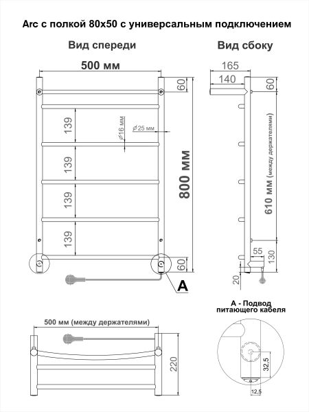 Полотенцесушитель электрический INDIGO Arc с полкой отлично впишется в интерьер ванной комнаты в современном стиле или в дизайн лофт. Модель оснащена кнопкой включения на нижней части стойки. Универсальность изделия предусматривает подключение через прямой провод, который переставляется на нужную вам сторону или скрытое подключение без покупки дополнительного переходника. Длина прямого провода 1,1 метра.