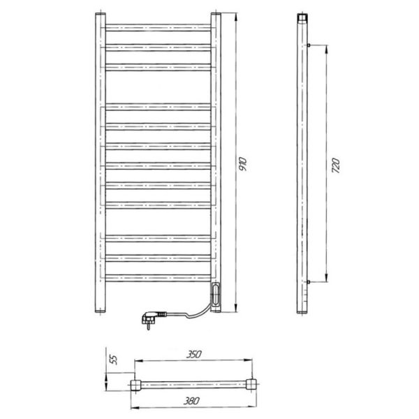 Полотенцесушитель электрический Laris Астор ЧКЧ12 350х900 R 73207665 Черный муарХарактеристики:Цвет: черный муар.