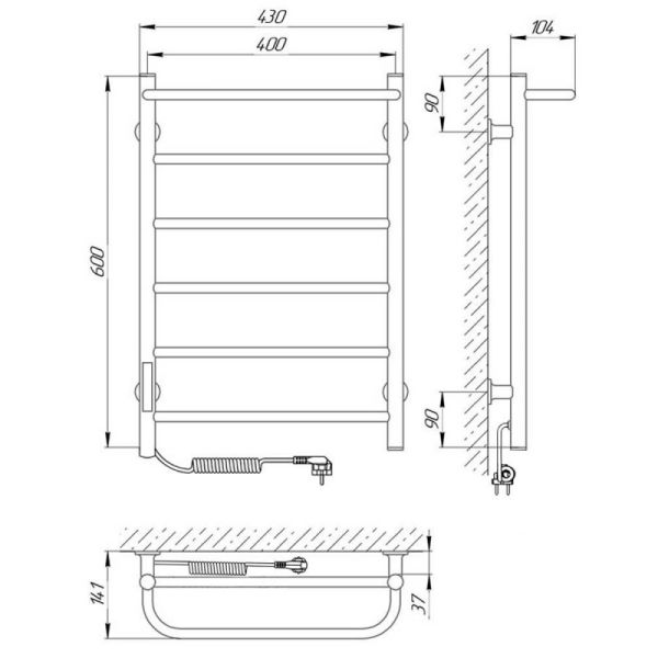Полотенцесушитель электрический Laris Прайм 73207647 левый П6 40x60см хром