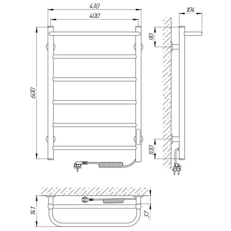 Полотенцесушитель электрический Laris Прайм 73207648 правый П6 40x60см хром