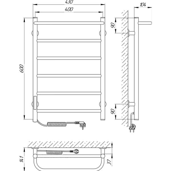 Полотенцесушитель электрический Laris Прайм ЧКЧ П6 400x600 L 73207592 Черный муар, Laris, Laris полотенцесушители электрическиеЭлектрический ПС изготовлен из конструкционной стали с толщиной стенки 1,5 мм для обеспечения оптимальной температуры нагрева изделия. Внутри установлен сухой ТЭН который обеспечивает экономию энергии,увеличивает срок службы изделия ( по сравнению с изделиями с жидкостным теплоносителем). ТЭН имеет 3 степени защиты-от пыли,влаги,перегрева-100% безопасность при эксплуатации! Гарантия 5 лет на изделие и лакокрасочное покрытие. Краска порошковая белая - матовая (муар) RAL 9016 с фосфотирующей основой. Терморегулятор кнопочный на стойке с функцией таймера. Температура нагрева поверхности изделия 50-55C. Для скрытого подключения изделие укомплектовано модулем скрытого подключения. Изделия торговой марки Laris имеют высокий уровень эксплуатационной надежности, обладают хорошей функциональностью при использовании. ТМ Laris - Репутация Комфорта