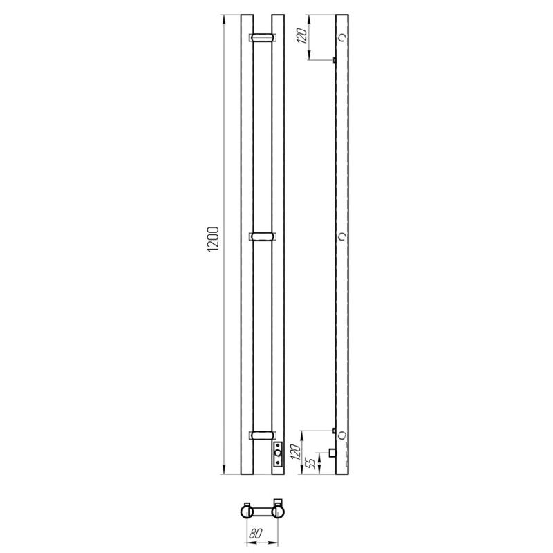 Полотенцесушитель электрический Laris Прайм Дуэт ЧКЧ 80х1200 R 73207635 Черный муар