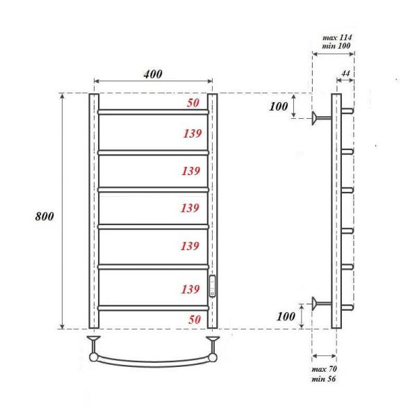 Полотенцесушитель электрический Point PN04848 П6 400x800 диммер справа, хром