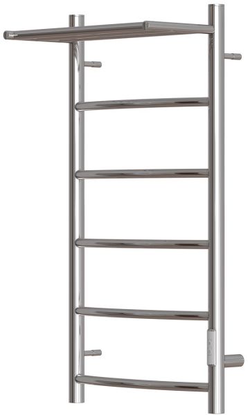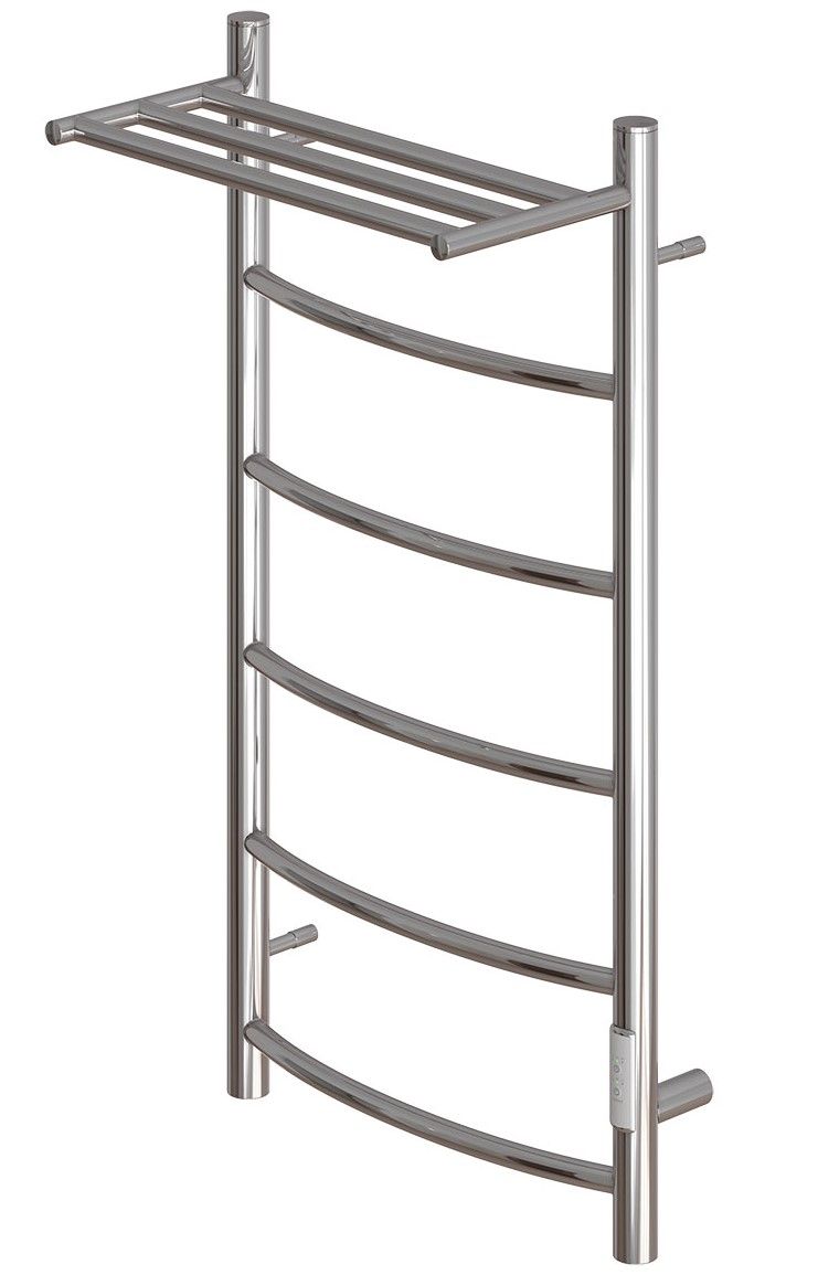 Электрический полотенцесушитель Афина с полкой с греющим кабелем в цвете хром выполнен из нержавеющей стали AISI 304L с толщиной стенки 2,0 мм.