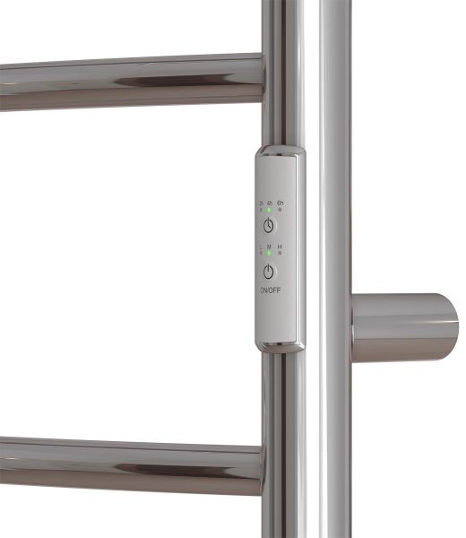 Полотенцесушители оборудованы блоками управления с таймером (3 режима - 2,4,6 часов) и возможностью регулировки температуры (3 температурных режима). Блок управления расположен на правой стойке.