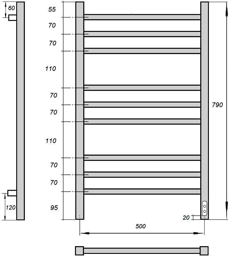 Полотенцесушитель сухого типа с нагревательным кабелем