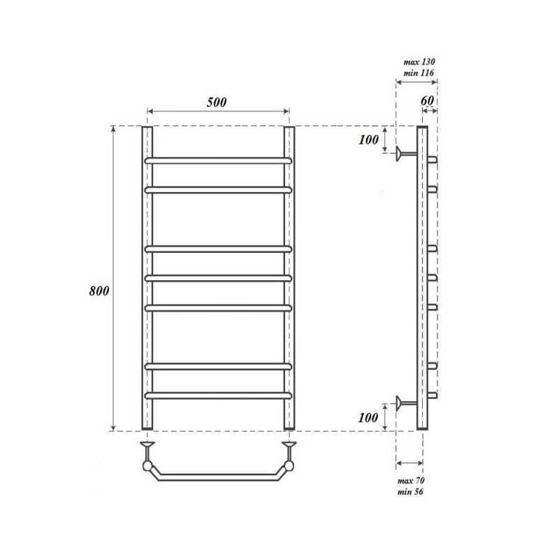 Полотенцесушитель электрический Point PN07158E П7 500x800 левый/правый, хром