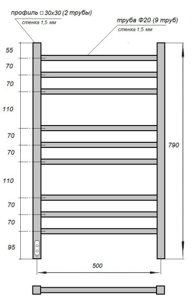 Электрические полотенцесушители с греющим кабелем Веста в цвете бронза