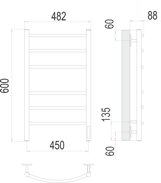 Полотенцесушитель электрический Terminus Классик П6 450х600 электро КС 9003 матовый