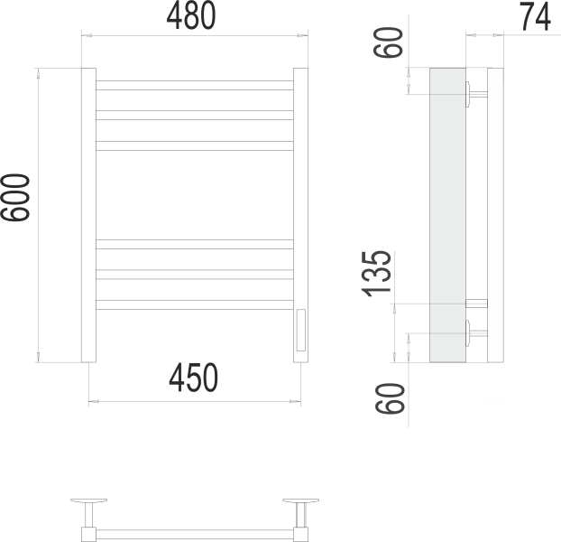 Полотенцесушитель электрический Terminus Ватикан П6 450х600 электро КС 9005 матовый