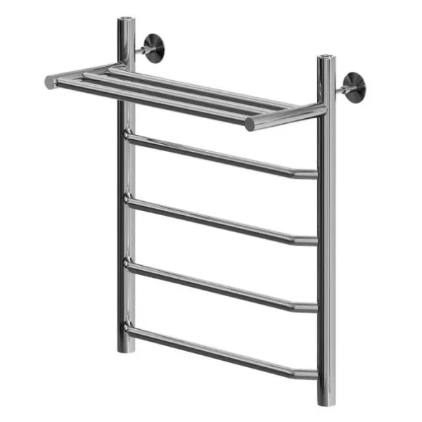 Полотенцесушитель водяной Aquanet Fiona с полкой 600x500, хром годен не только поддерживать подходящий микроклимат в ванной комнате, но и стать украшением ванной. Его форма лесенка покорит любителей домашнего уюта. Благодаря тому, что коллектор полотенцесушителя состоит из  секций, можно рассчитывать на хороший обогрев помещения, учитывая параметры изделия: ширину 500 мм и высоту 600 мм. Полотенцесушитель выполнен из качественной нержавеющей стали - материала, который обеспечит защищенность и долговечность при использовании изделия. Производитель предоставляет на полотенцесушитель гарантию 5 лет. Цвет хром легко впишется в дизайн. При установке изделия примите во внимание, что межосевое расстояние - 500 мм.