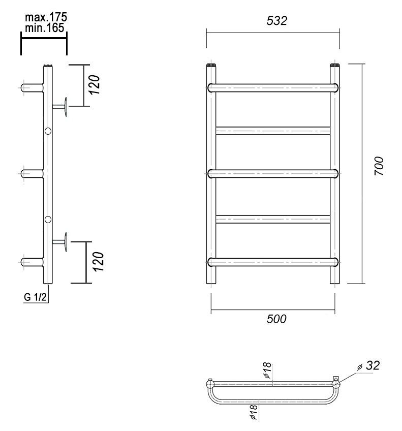 М/о расстояние (межосевое расстояние): 500Количество перекладин: 5Коллекция: ОрфейТип: водяныеЦвет: хромШирина (мм): 532Высота (мм): 700Глубина (мм): 175-165Вес: 4,2Объем: 0,0465Страна: РоссияГарантия: 10 лет