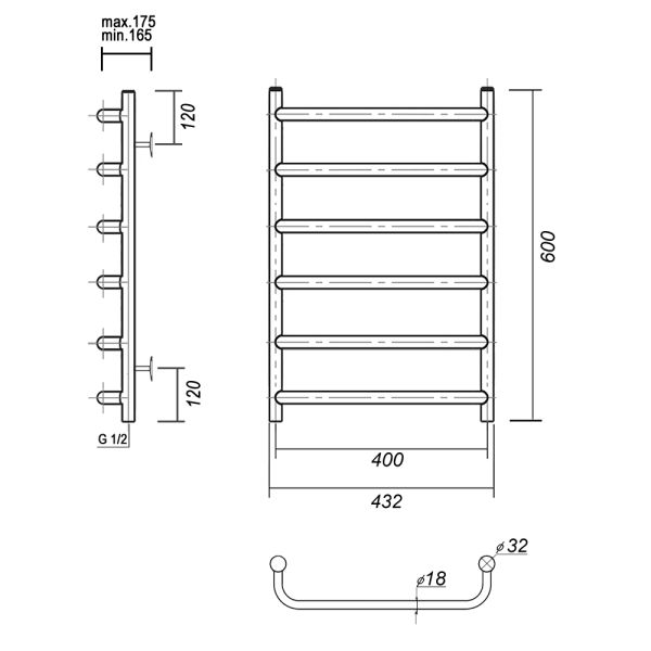 Полотенцесушитель водяной Domoterm Стефано П6, ширина 40 см, высота 60 см, нижнее подключение, цвет золото, Стефано П6 400x600 золотоВодяной полотенцесушитель из нержавеющей пищевой стали. Труба электросварная. Толщина 2 мм. Вертикальные стойки имеют диаметр 32 мм., горизонтальные перекладины выполнены из трубы диаметром 18мм. Подключение к ГВС нижнее, резьба внутренняя, 1/2".