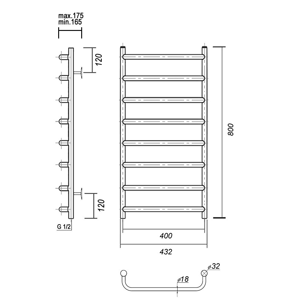 Комплектация: полотенцесушитель, крепление телескопическое 4 шт., заглушка, кран Маевского, угловой переходник HP-НP 1/2*3/4 - 2 шт., паспорт на изделие