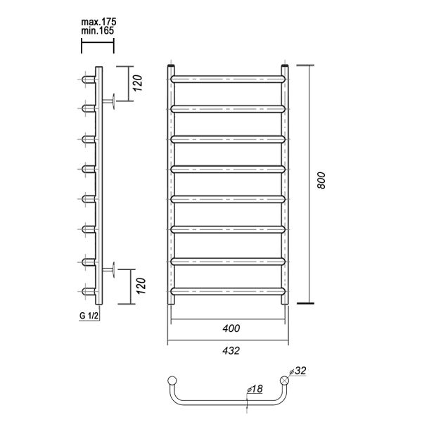 Полотенцесушитель водяной Domoterm Стефано П8, ширина 40 см, высота 80 см, нижнее подключение, цвет золото, Стефано П8 400x800 золотоВодяной полотенцесушитель из нержавеющей пищевой стали. Труба электросварная. Толщина 2 мм. Вертикальные стойки имеют диаметр 32 мм., горизонтальные перекладины выполнены из трубы диаметром 18мм. Подключение к ГВС нижнее, резьба внутренняя, 1/2".