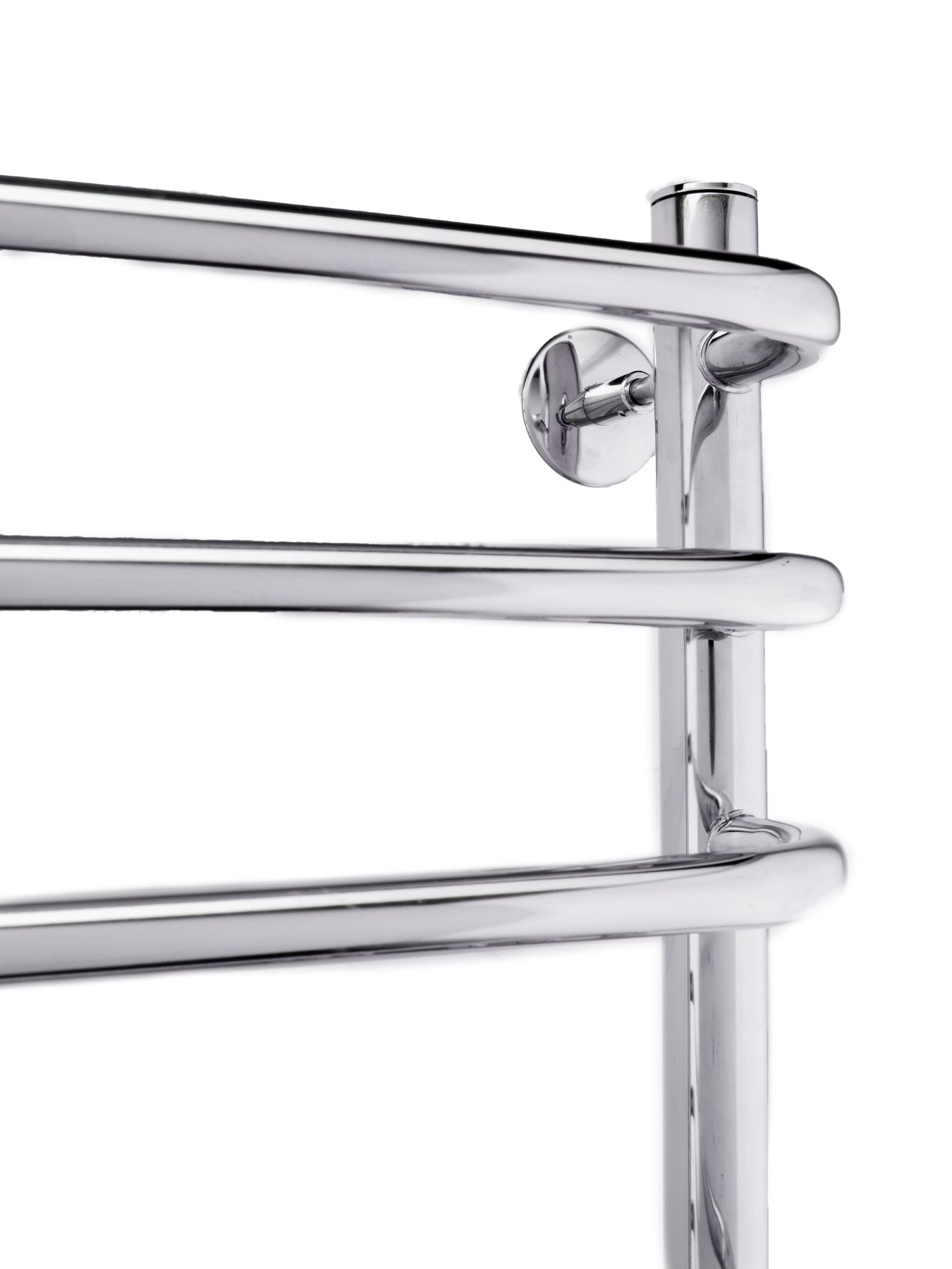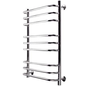 Тщательная полировка изделия придает ей великолепный оттенок «хром». Полотенцесушитель с полкой водяной удобен в использовании, на полочке можно хранить текстильные изделия для просушки, обеспечат круглосуточно теплые полотенца.