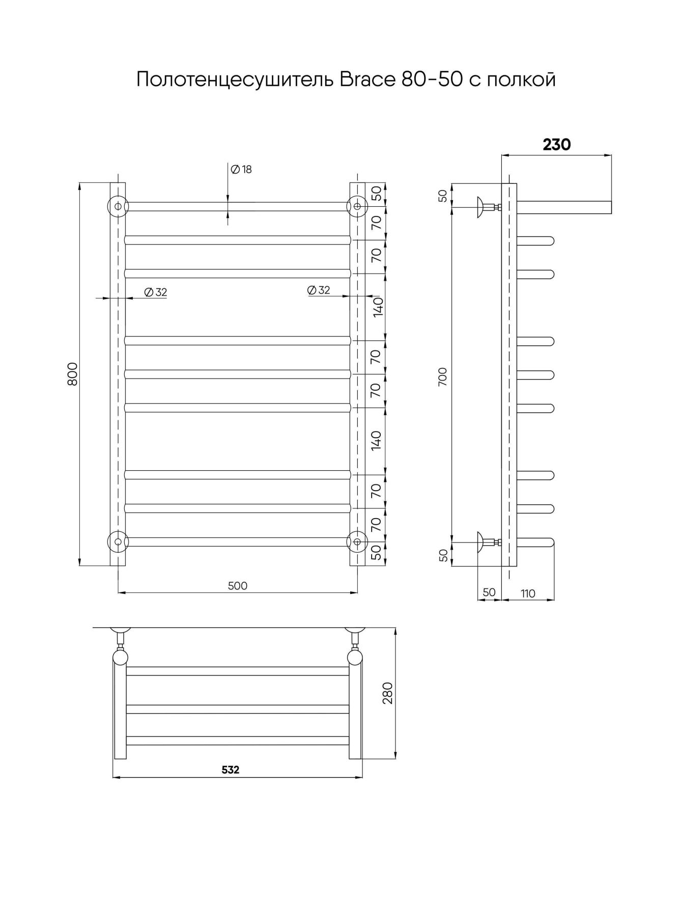Полотенцесушитель водяной Indigo Brace LBCW80-50P с полкой 80x50 см хром купить