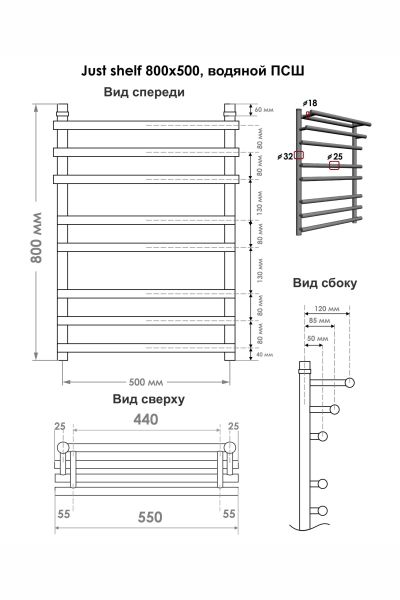 Полотенцесушитель водяной INDIGO Just Shelf с каскадным расположением перекладин. Многофункциона... Подробнее