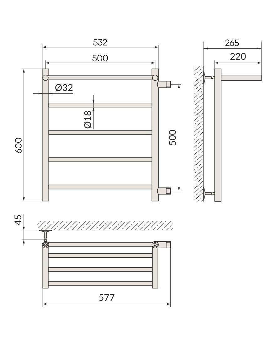 Полотенцесушитель водяной Indigo Line LLSHSW60-50R-б/п-50 с полкой 60x50 см хром купить