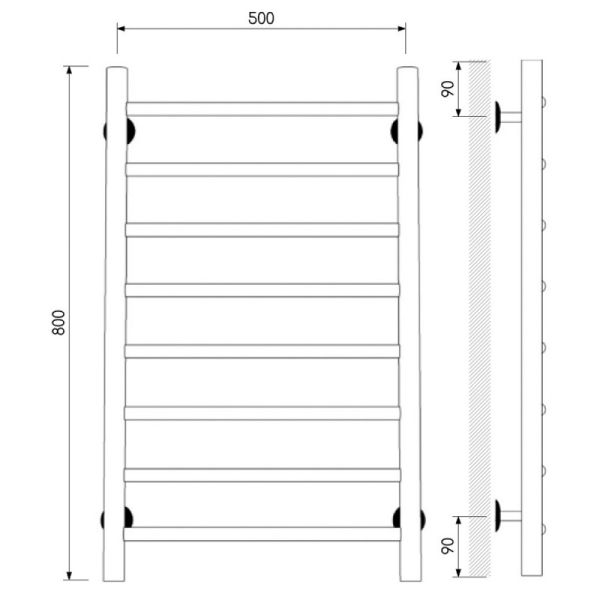 Полотенцесушитель изготовлен из нержавеющей стали — износостойкого и не подверженного коррозии материала, легко выдерживающего агрессивную среду систем отопления.