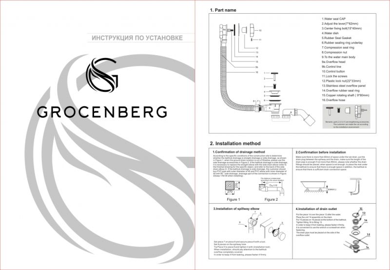 Слив-перелив для ванны GROCENBERG купить в интернет-магазине "Gidro-butik" с гарантией от производителя Большой выбор.  Низкие цены Быстрая доставка по Москве и Московской области.
