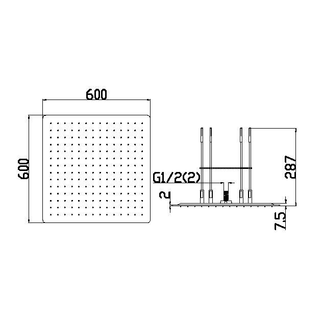 Потолочный встраиваемый квадратный душ Boheme Shower. Функции: дождь, каскад В комплексте с встр... Подробнее