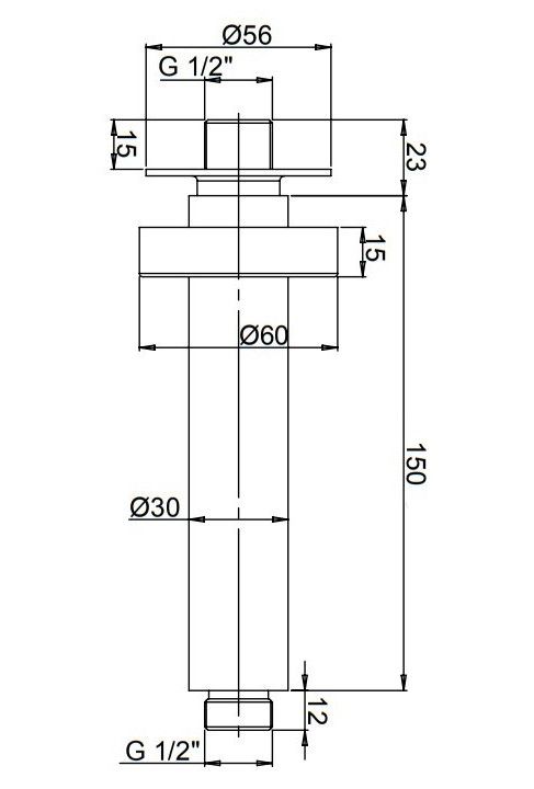 Потолочный держатель для верхнего душа круглой формы обеспечивает надежную фиксацию и комфортное использование. Длина кронштейна 20см, рассеиватель будет расположен практически под потолком, что позволяет расслабиться и насладиться тропическим дождем.