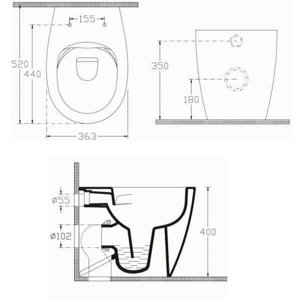 • Укороченный унитаз: