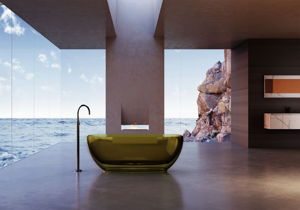 Прозрачная ванна ABBER Kristall AT9703Vesuvian из полиэфирной смолы 170x75см оливковый купить